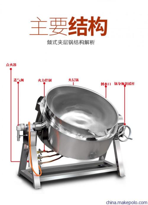 1、固定式主要由鍋體和撐腳組成;可傾式主要由鍋體和可傾架組成;