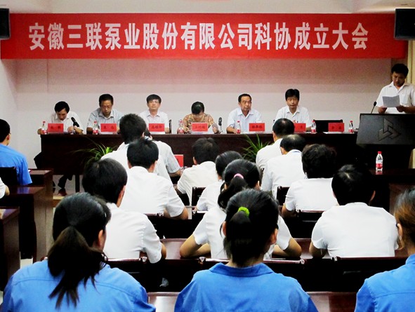 2012年7月25日,公司隆重召開了安徽三聯(lián)泵業(yè)股份有限公司科學技術(shù)協(xié)會成立大會(以下簡稱企業(yè)科協(xié)),會議由人力資源總監(jiān)高敏主持。出席此次大會的有馬鞍山市企事業(yè)科協(xié)工作部部長高耀華、和縣副縣長王竹梅、和縣科協(xié)主席駱奉根、公司常務副總汪生,總工程師夏巍等,公司技術(shù)、品管等部門共50多人參加此次大會。