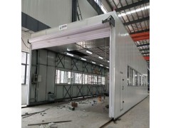 整體移動式噴漆間的設(shè)計(jì)目的,是為了滿足較大型工件 打磨或噴漆的需要。一般情況下每套房體對應(yīng)2~3個(gè)排風(fēng)凈化工位,哪個(gè)工位上的工件需要噴漆時(shí),房體則行走移動到那個(gè)工位,其他工位可以繼續(xù)打磨工作,待 房體內(nèi)的工件噴漆完畢后,再控制移動房體行走到打磨完畢后的工件工位,如此設(shè)計(jì)可以實(shí)現(xiàn)大型工件的不間斷連續(xù)噴漆工作。房體為鋼結(jié)構(gòu)構(gòu)造,房體立柱下面設(shè)置有兩臺電動驅(qū)動行走機(jī)構(gòu),行走機(jī)構(gòu)沿地面軌道行走。移動房體兩端設(shè)置有電動卷簾大門,房體行走時(shí),大門升起,待到達(dá)指定位置時(shí),大門降落關(guān)閉。大門與行走機(jī)構(gòu)由電氣控制部分連鎖控制,大門完全升起后,房體才可移動行走。